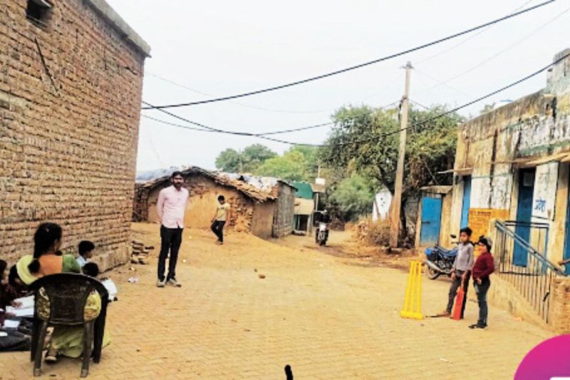 छबड़ा. बाहर बैठकर पढ़ने को मजबूर छात्र।