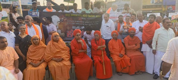 पिछले दिनों बेंगलूरु में गाय के प्रति क्रूरता बरतने के विरोध में बुधवार को हुब्बल्ली (कर्नाटक) में गौभक्तों ने रैली निकालकर प्रदर्शन किया। रैली मुरसावीर मठ से रवाना होकर प्रमुख मार्गों से होते हुए चेन्नमा सर्किल पहुंची। गौभक्तोंं ने गाय की रक्षा करने एवं गाय के प्रति क्रूरता बरतने वालों के खिलाफ सख्त कार्रवाई की मांग की। इस दौरान विभिन्न मठों के स्वामी एवं संतगण भी मौजूद थे।