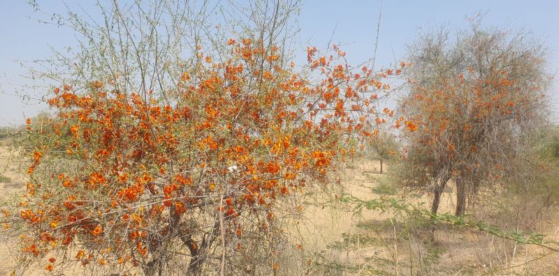 बज्जू. कहीं बालू के धोरे, तो कहीं पर अरावली की सहायक पर्वतमाला की छोटी-मोटी पहाड़ियां। कुछ ऐसी ही अनूठी मारवाड़ की प्रकृति की रंगीन छटा हर किसी को भी बेदह आकर्षित करती है, लेकिन इन सबके बीच मरुस्थल में एक ऐसा पेड़ है रोहिड़ा, जिसके फूलों की आभा मारवाड़ के धोरों में धूल की आभा को भी रंगीन बना रहे हैं। मरुधरा के इस पेड़ पर चैत्र मास में नव संवत्सर के आते ही फूल खिलने लगते हैं, जो अलग ही छटा बिखेरते हैं। वर्तमान में स्वर्णमयी बालू धरती के खेतों में जहां-तहां दिखाई देने वाला रोहिड़ा अपने अनूठे कसुमल रंगी फूलों से आच्छादित नजर आ रहे हैं। वर्तमान में वन विभाग की उदासीनता की वजह से इन पेड़ों की अनदेखी हो रही है। ना विभाग इनका सरंक्षण कर पा रहा है और ना नए पेड़ लगाने की कोई योजना है, जिससे लगातार पेड़ कटने से इनकी संख्या घटती जा रही है।