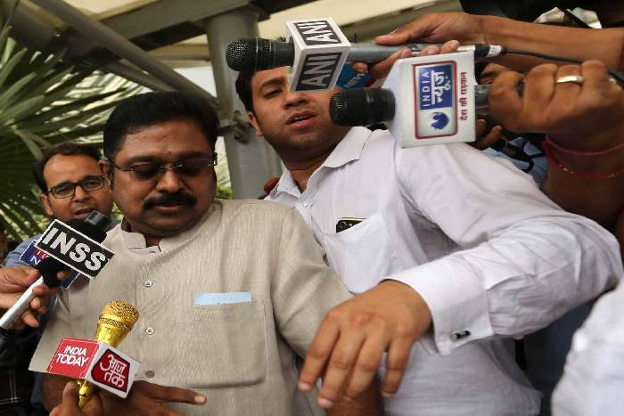 एआईडीएमके महासचिव और शशिकला के भतीजे टीटीवी दिनाकरन के लिए दोबारा पार्टी सिंबल निर्वाचन आयोग से दिलवाने के लिए 50 करोड़ की डील करवाने का आरोप है।