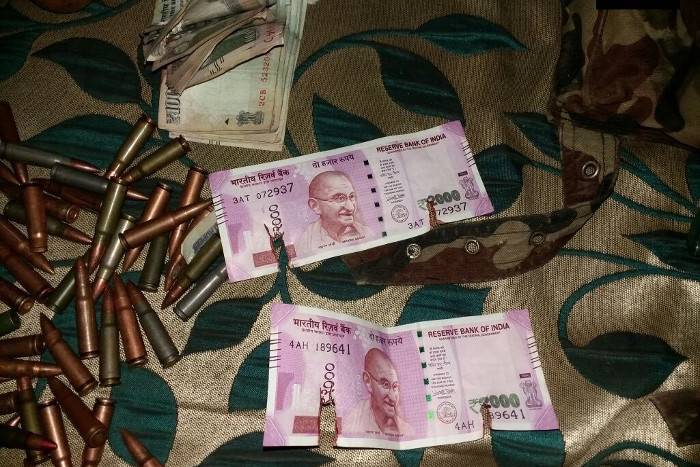 पीएम मोदी की 500 और 1000 रुपए के पुराने नोट बैन की घोषणा की थी, उसके बाद से ही लोग पैसों के लिए तथा नए नोटों के लिए लाइनों में लगे हैं। पर ये नोट आतंकियों के पास कैसे पहुंच गए, ये सोचने वाली बात है। मारे गए दोनों आतंकियों के पास से कुल 15000 रुपये मिले हैं, जिसमें दो नोट 2000 के हैं और बाकी 100 के हैं।