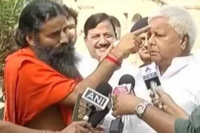 बाबा रामदेव बुधवार को लालू यादव के घर पहुंचे। उन्होंने कहा कि वह लालू यादव को अंतरराष्ट्रीय योग दिवस पर आयोजित होने वाले कार्यक्रम का न्योता देने आए हैं। इस दौरान रामदेव ने लालू को चॉकलेट खिलाई और चेहरे पर गोल्ड क्रीम लगाया। बाबा रामदेव ने लालू को योग भी सिखाया।