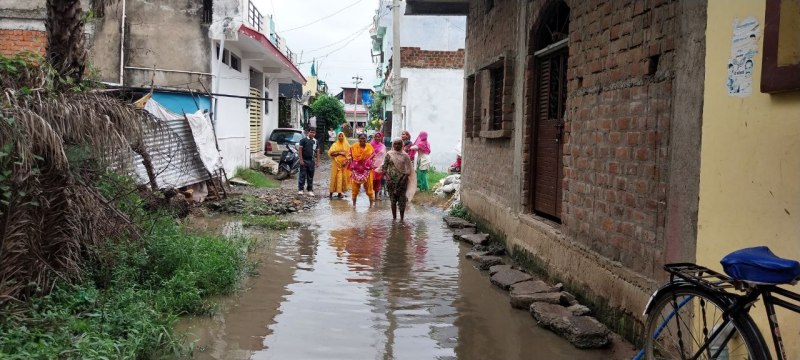रास्ते में पानी भरा होने से निकलना मुश्किल