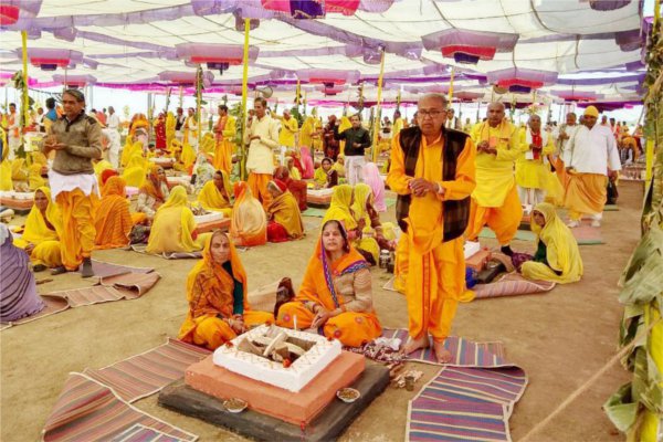 श्रद्धालुओं को संबोधित करते हुए श्यामासिंह दीदी ने कहा कि प्रकृति पर्यावरण आज के जीवंत देव है। वचन कर्म द्वारा सच्चे श्रद्धा भाव से इनकी पूजा करे संरक्षण करे तभी मृत्यु लोक के देवो का उद्धार हो सकेगा। दोपहर 2 से 4 बजे तक संगीतमय प्रवचन शंातिकुंज की टोली द्वारा किए गए। यज्ञ का क्रम प्रतिदिन सुबह 8 से दोपहर 12 बजे तक पारियों में किया जा रहा है। महायज्ञ की पूर्णाहुति 14 जनवरी को होगी। इस अवसर पर रामेश्वर पाटीदार, सरदारसिंह, मनीष भावसार, आरसी शर्मा, राधेश्याम गुप्ता, बापुसिंह, महेश विश्वकर्मा, गिरराज कारपेंटर, शिवनारायण सोनी, बाबूलाल राठौर, मदनलाल शर्मा आदि व्यवस्थाओं में जुटे रहे। जानकारी गायत्री परिवार जिला युवा प्रकोष्ठ प्रभारी रजनीश स्वर्णकार ने दी।विश्व शांति लोक कल्याण के लिए आहुतियां समर्पित की। इसी क्रम में ध्वज पताका पूजन आमला सरपंच ने, गुरु सत्ता पूजन पूर्व विधायक बद्रीलाल सोनी एवं कालूराम रातडिय़ा ने, सर्वतो भद्रमंडल का पूजन आगर विधायक गोपाल परमार, कलश पूजन दिनेश खंडेलवाल, दीप पूजन द्वारकाप्रसाद लड्डा, देव पूजन जयनारायण चौधरी, जयनारायण सरपंच खेरिया ने किया।