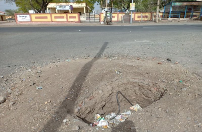 नगरीय क्षेत्र की सीमा में राजमार्ग के किनारे निजी कंपनी ने 4जी लाइन डालने के लिए जगह-जगह गड्ढे खोद दिए