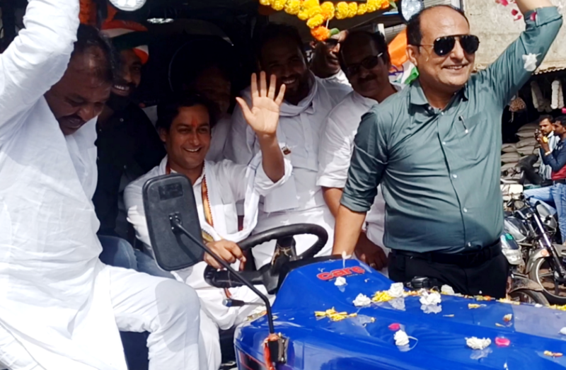 टैंकर रैली में जयवर्धन सिंह का अलग अंदाज, कार्यकर्ताओं को बैठाकर चलाया ट्रेक्टर, बोले- जीत स्पष्ट है