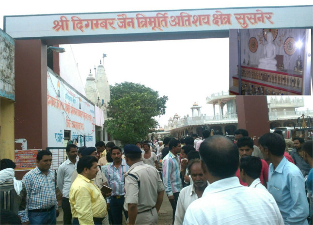 जैसे ही चोरी की जानकारी समाजजनों को लगी वे आक्रोशित हो गए। जानकारी विराजमान आचार्यश्री दर्शनसागर को भी दी गई। थाना प्रभारी पहुंचे व जानकारी ली। हालांकि सुराग नहीं मिला। इधर आक्रोशित समाजजनों ने नगर बंद का आह्वान कर दिया और घोषणा की मूर्ति मिलने तक बंद रहेगा। इधर चोरों की सूचना देने वाले को 21 हजार देने की घोषणा की। आचार्यश्री ने कहा कि चोर मूर्ति नहीं हमारी आस्था ले गए हैं। जैन समाज अहिंसावादी है किंतु प्रशासन को सोचना चाहिए कि समाज को अहिंसा का रास्ता छोड़कर हिसा पर उतारू न होना पड़े।