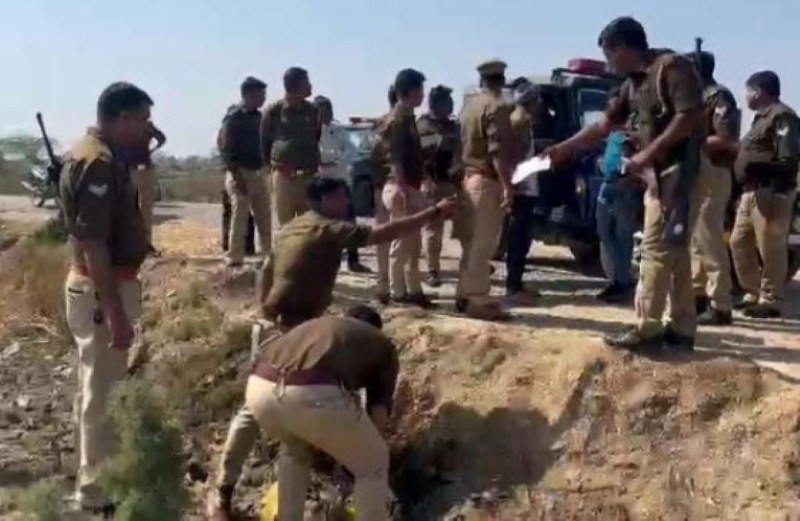 युवक का शव मिलने पर जांच करती पुलिस