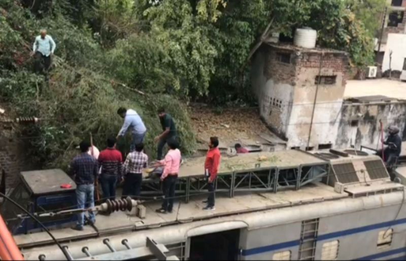 राजा की मंडी स्टेशन के निकट ओ एच ई डिब्बे पर गिरा पेड़