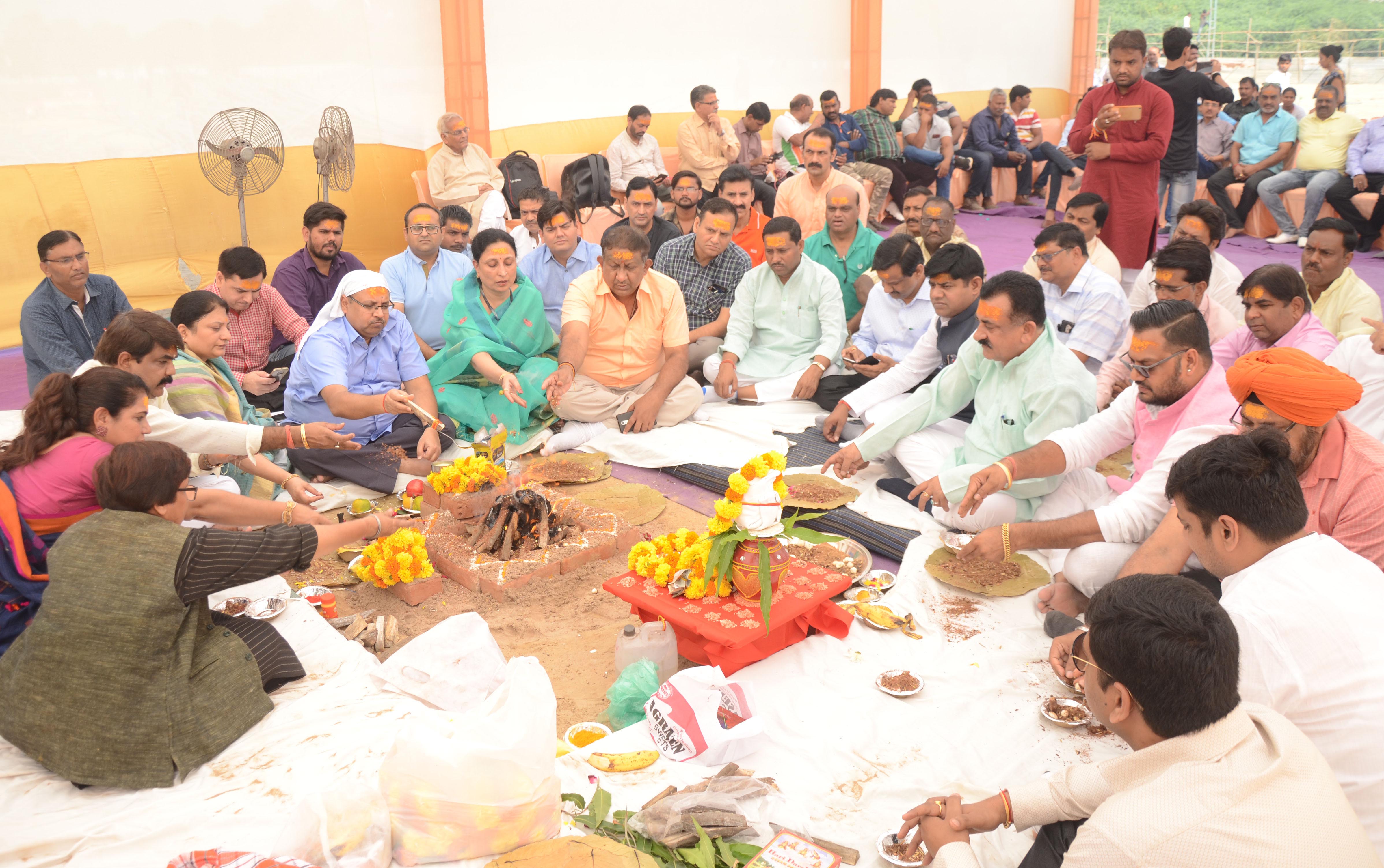 महोत्सव का भूमि पूजन यजमान लघु उद्योग भारती के मंडलाध्यक्ष राजीव बंसल और उनकी धर्मपत्नी प्रीती बंसल व स्वदेशी जागरण मंच के प्रदेशउपाध्यक्ष संजीव माहेश्वरी उनकी धर्मपत्नी शची माहेश्वरी द्वारा कैलाश महादेव मंदिर के महन्त चंद्रकांत गिरि ने वैदिक मंत्रों के साथ सम्पन्न कराया। इस अवसर पर शहर की प्रतिष्ठित समाजिक व व्यापारिक संस्थों के पदाधिकारियों ने भाग लिया।