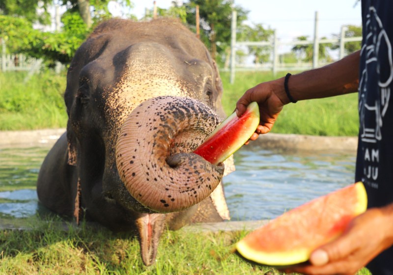 मथुरा के चुरमुरा में संस्था द्वार संचालित हाथी संरक्षण केंद्र और हाथी अस्पताल परिसर में, सभी हाथियों को इस मौसम में होने वाली विशेष देखभाल की आवश्यकता को ध्यान में रखते हुए हाथियों को हर सुबह ताज़ा पानी से नहलाया जाता है और बाकी पूरा दिन वे अपने विशाल बाड़ों में बनाये गए जंबो पूल में डुबकी का आनंद लेते हैं। हाथी डस्ट बाथ भी करते हैं मतलब वे दिन में अपनी पीठ पर मिट्टी फेंकते हैं। यह प्राकृतिक सनस्क्रीन के रूप में काम करता है और उनकी त्वचा को कड़ी धूप से बचाता है। भालुओं के समान, हाथियों को अतिरिक्त राहत प्रदान करने वाले रसीले फल भी दिए जा रहे हैं और उनके भी बाड़ों में पानी के फुव्वारे लगे हुए है, जो पूरे दिन पानी की छिड़काव करते रहते हैं।