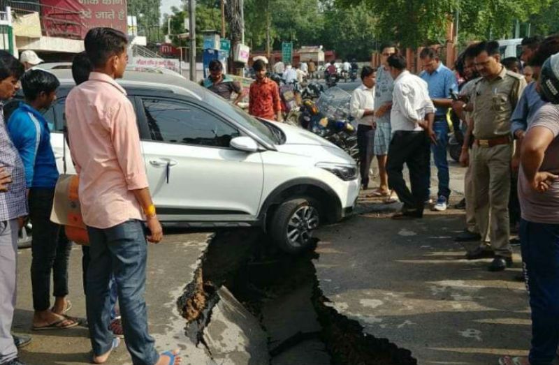 आगरा। ताजमहल की नगरी को स्मार्ट सिटी को सूची में शामिल किया गया है। यहां स्मार्ट सिटी प्रोजेक्ट के तहत तस्वीर बदलने के दावे किए जा रहे हैं लेकिन मौजूदा हालात हैरान करने वाले हैं। शहर में कई जगह सड़कों पर जलभराव है तो कई जगह सड़कें धंस रही हैं। ताजा मामला आगरा के सूर्य नगर का है। यहां सड़क बीच में से धंस गई, खड़ी गाड़ी इसमें फंस गई।
