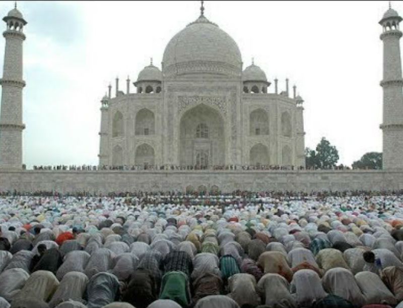 ईद उल जुहा की नमाज अदा करने के लिए ताज महल की मस्जिद में सैकड़ों मुस्लिम भाई पहुंचे। नमाज अदा करने के लिए ताजमहल में तीन घंटे पर प्रवेश निशुल्क रहा।