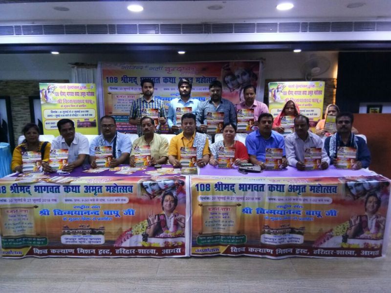 आगरा। विश्व कल्याण मिशन ट्रस्ट द्वारा विश्व शांति एवं जन कल्याण के साथ मानवता व अध्यात्मिकता के संस्कार घर घर पहुंचाने की भावना से भागवत कथा का आयोजन किया जा रहा है। बुधवार को ट्रस्ट की आगरा इकाई द्वारा कमला नगर स्थित टेंपटेशन रेस्टोरेंट में कथा का आमंत्रण पत्र जारी करते हुए आगरा के भक्तों को वृंदावन में कथा श्रवण करने का निमंत्रण दिया गया।