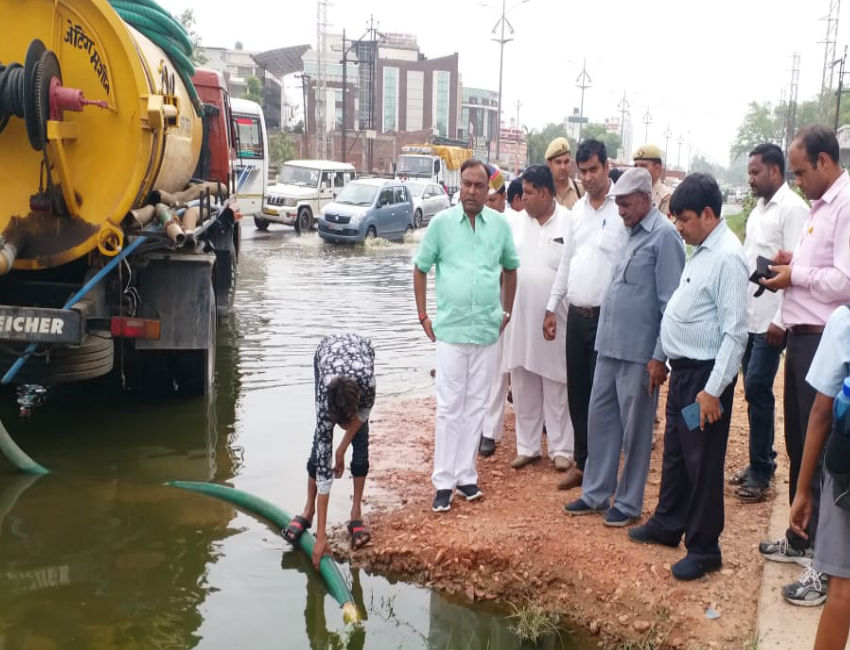 महापौर नवीन जैन ने देखा कि राष्ट्रीय राजमार्ग पर हुए भीषण जलभराव के कारण जहां एक तरफ वाहनों को वहां से गुजरने में परेशानी हो रही थी तो वहीं सड़क किनारे बने स्कूल से छुट्टी होने के बाद छोटे-छोटे बच्चे जलभराव और गड्ढों से बचते हुए अपने घर की ओर जा रहे थे। सड़क के किनारे बना हुआ नाला पूरी तरह से भरा हुआ था जिसके चलते कहीं से भी जल निकासी नहीं हो रही थी। इस जलभराव में कहीं गड्ढे में गिरकर कोई वाहन लुढ़क न जाए या फिर किसी की जान पर न बन आये, इसके लिए महापौर नवीन जैन ने मौके पर ही सेनेटरी इंस्पेक्टर को अस्थाई रूप से जलभराव को खत्म करने के निर्देश दिए। निर्देश के बाद मौके पर ही सेक्शन कम जेटिंग मशीन की कई गाड़ियां लगाई गई। इन मशीनों की मदद से जलभराव के पानी को गाड़ी के टैंक में एकत्रित किया गया जिसे अन्यत्र जगह छोड़ा गया। महापौर ने कहा कि जय प्रक्रिया जब तक चालू रखी जाए जब तक कि जलभराव पूरी तरह से समाप्त ना हो जाए।