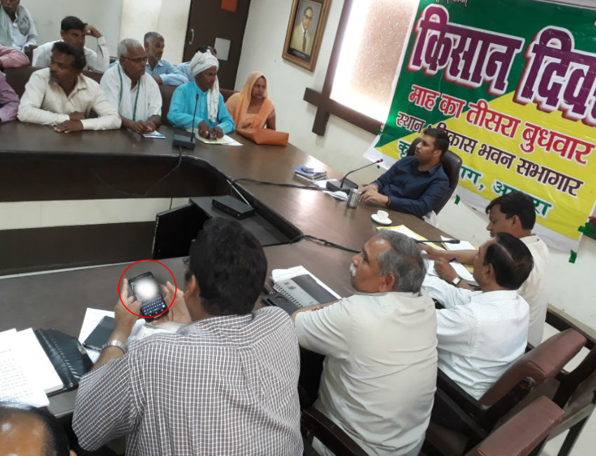 आगरा। किसान दिवस की बैठक के दौरान प्रभारी जिलाधिकारी, मुख्य विकास अधिकारी रविन्द्र कुमार मांदड ने कार्यवृत्त की अनुपालन आख्या की प्रगति समीक्षा व किसान प्रतिनिधियों की समस्याओं के निस्तारण हेतु सम्बन्धित अधिकारियों को निर्देश दिए। इस बैठक में सबसे अधिक चौंकाने वाली बात ये रही, कि जहां प्रभारी जिलाधिकारी निर्देश दे रहे थे, वहीं ये अधिकारी अपने मोबाइल में लगे हुए थे। डर इतना भी नहीं था, कि अधिकारी की बैठक चल रही है।
