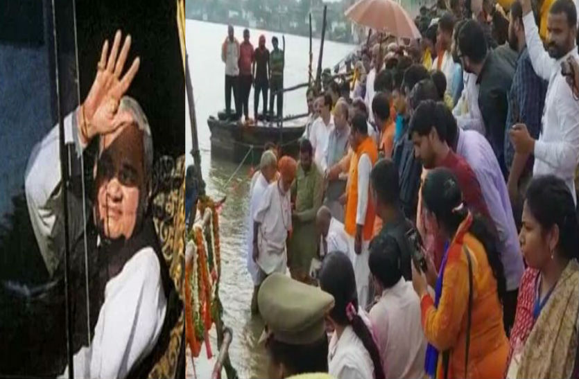 जैसे ही वे लोग यमुना घाट से अटल जी की अस्थियों का विसर्जन करने के लिए नाव पर सवार हुए तो तेज बारिश होने लगी। यह दृश्य देखकर ऐसा लगा कि अटल जी की विदाई पर मानो आसमान भी आंसू बहा रहा है। बटेश्वर मंदिर के जय प्रकाश गोस्वामी के साथ में तमाम प्रखंड पंडितों ने पूर्व प्रधानमंत्री अटल बिहारी वाजपेई की अस्थियों का विसर्जन करवाया। इस दौरान ग्रामीण अजातशत्रु अमर रहें, अटल अमर रहें..के नारे लगाते रहे।