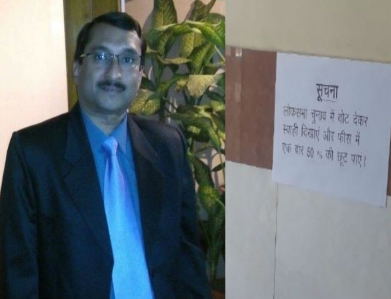 आगरा। लोकसभा चुनाव 2019 में मतदान के लिये जागरुक करने के लिये चुनाव आयोग ने प्रचार के कई माध्यम अपनाये हैं, लेकिन शहर के जाने माने चिकित्सक डॉ. अनुराग यादव ने जिस तरह मतदाताओं से अधिक से अधिक संख्या में मतदान करने के लिये प्रेरित करने का काम किया है, वो वास्तव में सराहनीय है। डॉ. अनुराग यादव ने अपने क्लीनिक पर पर्चे लगवा दिये हैं, जिन पर लिखा गया है कि लोकसभा चुनाव में मतदान के बाद स्याही दिखाने पर 50 फीसद का डिस्काउंट मिलेगा।
