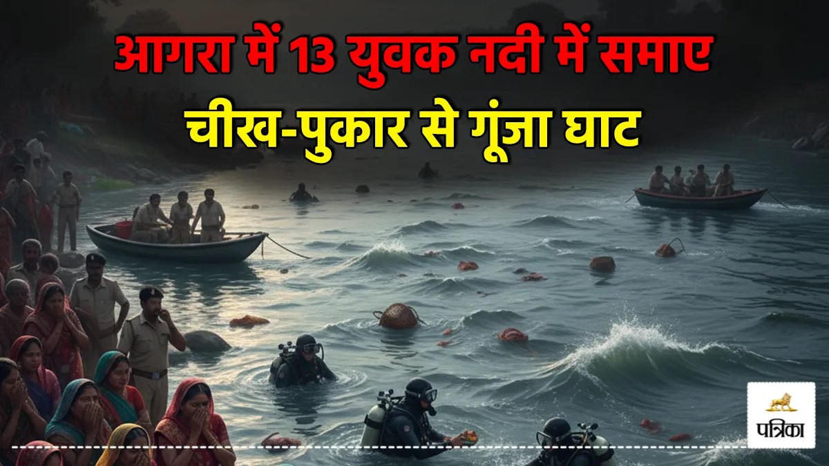 Agra durga visarjan accident 13 youth drowned in river: आगरा में दुर्गा प्रतिमा विसर्जन के मौके पर शुक्रवार को बड़ा हादसा हो गया। अलग-अलग जगहों पर हुए इस घटनाक्रम में 13 युवक नदी में डूब गए। इस हादसे ने पूरे इलाके को गहरे सदमे में डाल दिया। पुलिस, गोताखोर और प्रशासन की टीम राहत-बचाव में जुटी है। अभी तक चार लोगों को नदी से बाहर निकाला गया है, बाकी की तलाश जारी है।