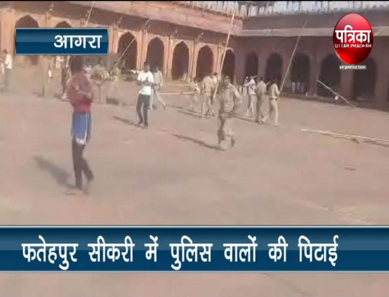 आगरा। फतेहपुर सीकरी स्मारक में 29 मई को पुलिस और दुकानदारों के बीच विवाद का वीडियो वायरल हुआ है। वायरल हुये इस वीडियो में साफ देखा जा सकता है, कि दुकानदार किस तरह पुलिस पर हावी हुये। पुलिस ने लाठियां चलाईं, तो दुकानदारों ने पथराव शुरू कर दिया। एकत्र हुये दुकानदारों के आगे पुलिस के होश उड़ गये। पुलिस को भागकर अपनी जान बचानी पड़ी।