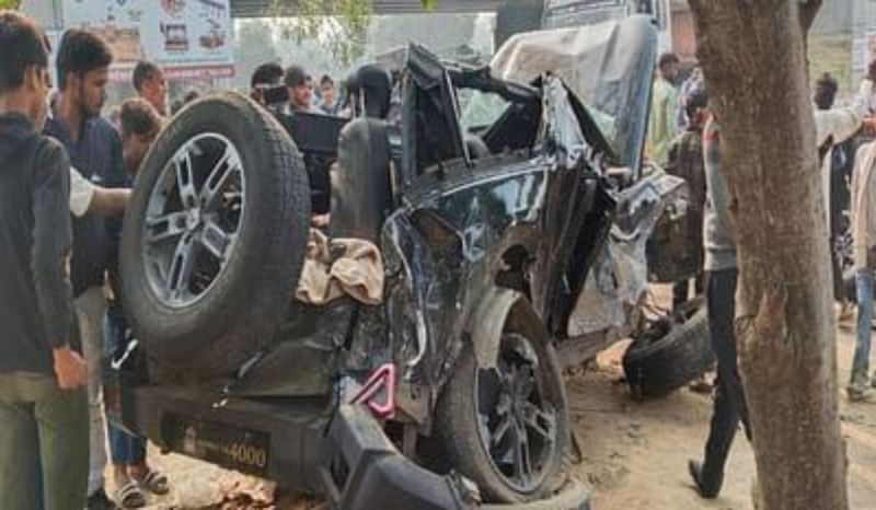 भीषण सड़क हादसे में कार के उड़े परखच्चे