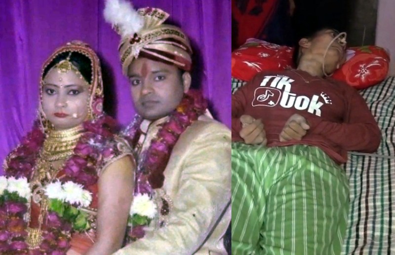 शादी के समय पति के साथ महिला, शादी के बाद घर में पलंग पर लेटी सुधबुध खो बैठी पीड़िता