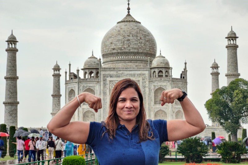 ताजमहल पर पोज देती इंटरनेशनल बॉडी बिल्डर प्रिया सिंह