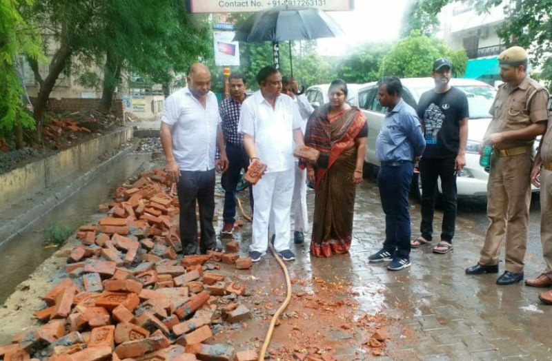 कमला नगर बी ब्लॉक, सेंट्रल बैंक (Central bank) रोड स्थित पार्क का सौंदर्यीकरण किया जा रहा है। महापौर को को गुप्त सूचना दी गई कि निर्माण कार्य में धांधली की जा रही है। बारिश के बीच महापौर मौके पर पहुंचे। उन्होंने नगर निगम के इंजीनियर और ठकेदार को मौके पर बुला लिया। उन्होंने पाया कि बाउंड्री निर्माण में स्टोन डस्ट और पीली ईंट का इस्तेमाल किया जा रहा था। मीडिया कर्मियों के सामने दो ईंटों को हाथ में लेकर आपस में धीरे से मारा तो ईंट के टुकड़े-टुकड़े हो गए। यह देख महापौर गुस्से से लाल पीले हो गए। ठेकेदार ने स्वीकार किया कि निर्माण कार्य में लापरवाही हुई है।