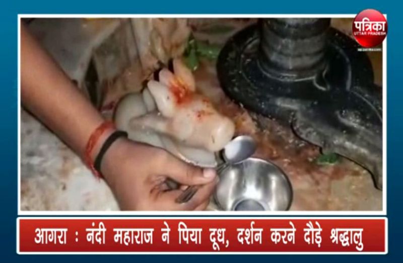दरअसल दयालबाग बसेरा स्थित सूर्य एन्क्लेव में सोमवार देर राज नंदी के दूध पीने की चर्चा फैल गई। देखते ही लोग मंदिर पहुंचने लगे औक नंदी को दूध पिलाने लगे। मंदिर में स्थित नंदी की मूर्ति के सामने दूध की चम्मच लगाई तो वह दीरे-धीरे खाली हो जा रही। स्थानीय निवासी तेजवीर दिवाकर भी अपने परिजनों संग मंदिर पहुंचे और उन्होंने दावा किया कि उन्होंने भी नंदी को दूध पिलाया है।