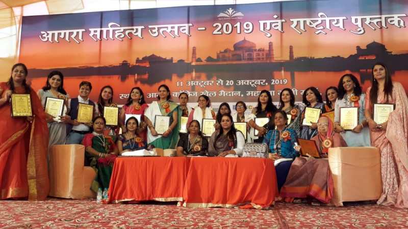 आगरा। महिलाएं हर क्षेत्र में परचम फहरा रही हैं। इसका जीता जीगता दाहरण आगरा कॉलेज मैदान में आयोजित साहित्य उत्सव में दिखा। जहां विभिन्न क्षेत्र (कुली, शिक्षिका, समाजसेवी, इवेन्ट मैनेजर, डॉक्टर, लेखक, कलाकार, गायक, होटल संचालिका) की प्रतिभाशाली महिलाओं को सहिला शक्ति सम्मान कार्यक्रम के तहत सम्मानित किया गया। जिसमें तीन पीढ़ियां यानि 6 वर्ष की बच्ची से लेकर 70 वर्ष की दादी मां भी शामिल थीं।