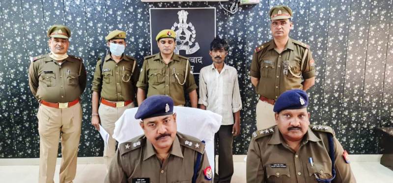 पुलिस हिरासत में खड़ा आरोपी