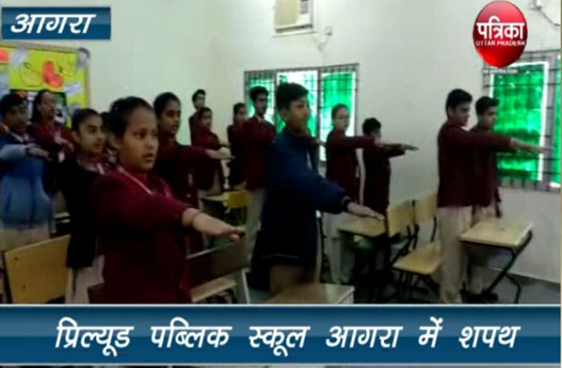 आगरा। गणतंत्र दिवस की 70वीं सालगिरह के उपलक्ष्य में 'पत्रिका' की ओर से 26, जनवरी 2020 से 'स्वर्णिम भारत' अभियान का आगाज किया गया है। इसके तहत आमजन से आह्वान किया गया है कि इस साल अपने गांव और शहर को 70 घंटे जरूर दें। रोज साढ़े ग्यारह मिनट शहर या गांव की सफाई और प्लास्टिक से मुक्ति के लिए काम करें। अपने आसपास सफाई रखें, प्लास्टिक का उपयोग बंद करें और दूसरों को भी प्रोत्साहित करें। इसी के तहत प्रिल्यूड पब्लिक स्कूल, दयालबाग, आगरा की प्रत्येक कक्षा में छात्रों ने स्वच्छता की शपथ ली। छात्रों ने संकल्प लिया कि स्वच्छता रखेंगे और प्लास्टिक का प्रयोग नहीं करेंगे।