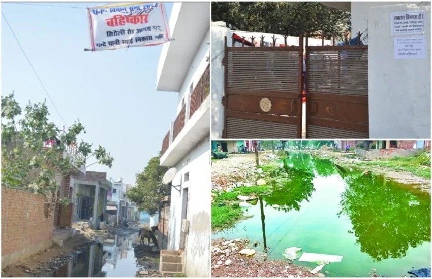 आगरा. उत्तर प्रदेश में 2022 में विधानसभा चुनाव होने वाले हैं। सभी राजनीतिक पार्टियां अपने-अपने काम को निगाने में लगी हुईं हैं। इसी बीच आगरा के एक मोहल्ले में विकास कार्य न होने से नाराज लोनों ने अपने घरों पर मकान बिकाऊ है तथा वोट बहिष्कार के पोस्टर लगा दिए हैं। जिन कॉलोनियों के लोगों ने पोस्टर को लगाया है इनमें 25 हजार से ज्यादा परिवार रहता है।