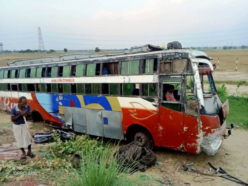 हादसे में क्षतिग्रस्त हुई स्लीपर बस