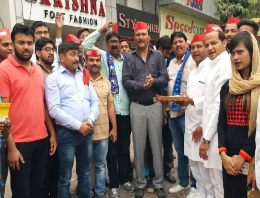 आगरा। गोरखपुर फूलपुर लोकसभा सीटों के उप चुनाव में ताजा नतीजों से समाजवादी पार्टी के नेताओं ने जश्न मनाना शुरू कर दिया है। जैसे जैसे मतगणना का क्रम आगे बढ़ रहा है, सपाई खेमे में खुशी की लहर दौड़ रही है। समाजवादी पार्टी के महा नगर अध्यक्ष वाजिद निसार के नेतृव मे फूलपुर व गोरखपुर में हुए चुनाव के नतीजों में समाजवादी पार्टी का परचम लहराये जाने पर संजय प्लेस स्पीड कलर लैब पर महानगर अध्यक्ष के नेतृत्व में मिठाई वितरण किया गया। पटाखे चलाकर समाजवादियों ने मनाया जीत का जश्न। तो वहीं आज इतने वर्षों बाद बसपाई भी सपाइयों के साथ इस जश्न में डूबे नजर आए।