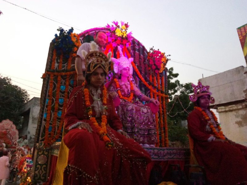 आगरा। जनकपुरी महोत्सव में आज वैदेही अपनी चारों सखियों के साथ रथ पर सवार होकर मिथिला नगरी में नगर भ्रमण को निकली। दूसरे रथ पर राजा जनक ललित नारायण पाराशर व रानी सुनयना मुन्नी देवी थे। रथ से पहले 6 झांकिया व तीन बैंड भक्ति पूर्ण गाने बजाते हुए चल रहे थे। सबसे आगे दो घुड़वार थे । सीता जी का डोला नगला अजीता से सेक्टर 4, अग्रसेन वाटिका बोदला, सेक्टर 1,3, 7 से सेंट्रल पार्क, कैला देवी चौराहा, करकुंज चौराहा से सेक्टर 15 से जनक महल के सामने से सामने, सेक्टर 8 से सेन्द्रल जेल रोड, नगला अजीता पर समापन हुआ।
