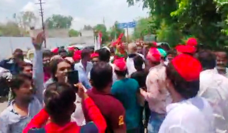 विरोध प्रदर्शन करते सपाई
