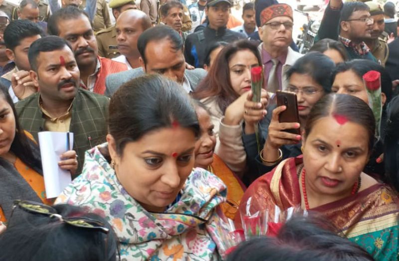 एक महिला ने सवाल किया भाजपा को वोट क्यों दें। इसपर स्मृति ईरानी बोली कि नए भारत के निर्माण के लिए भाजपा को वोट करें। किसान को विज्ञान और सम्मान के लिए, महिलाओं को खुले शौच में जाने से रोकना, आतंकी हमलों का जवाब देने के लिए भाजपा को वोट करें।