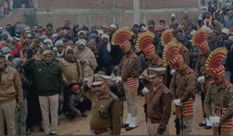 SSB Jawan Funeral in Agra: उत्तर प्रदेश की ताजनगरी आगरा के थाना बाह के बिजौली गांव में उस समय कोहराम मच गया। जब बुधवार को छोटे भाई आईटीबीपी के हवलदार नीरज सिंह की शहादत पर बनवाए जा रहे स्मारक का छज्जा टूटकर एसएसबी के जवान बड़े भाई पर गिर गया। हादसे में एसएसबी के जवान की मौके पर ही मौत हो गई। दो महीने के अंदर दो सगे भाइयों की मौत से पूरे गांव में मातम छा गया। गुरुवार को एसएसबी के जवान का पूरे सैन्य सम्मान के साथ अंतिम संस्कार किया गया। इस दौरान मौके पर मौजूद हर शख्स की आंखें नम हो गईं। इस दौरान ‘भारत माता की जय के साथ ही राजेंद्र सिंह अमर रहे’ के नारों से पूरा श्मशान घाट गूंज उठा।