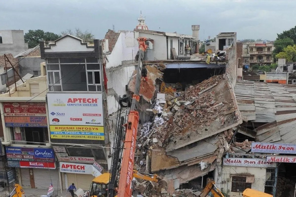 Three-storey building collapsed in Agra: आगरा में तीन मंजिला शोरूम ताश के पत्ते की तरह गिर गई। इस दौरान काफी जोर की आवाज आई। तीन मंजिला शोरूम का मालवा सड़क पर आ गया। घटना की जानकारी मिलते ही मौके पर पहुंचे पुलिस ने स्थिति को संभाला। शोरूम मालिक से घटना की जानकारी की। शोरूम गिरने की घटना रात में हुई है वरना बड़ा हादसा हो सकता था। दिन में काफी चहल पहल रहती है। यहां पर बड़ी-बड़ी दुकानें भी हैं। शोरूम की बिल्डिंग काफी जर्जर हो गई थी। सूचना पाकर मौके पर पुलिस पहुंच गई। आने जाने का रास्ता भी पूरी तरह बंद हो चुका था, मालवा सड़क पर भी थोड़ा पड़ा था। मामला कोतवाली क्षेत्र का है।