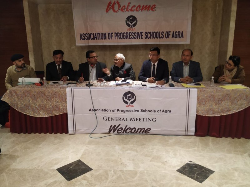 आगरा। एसोसिएशन ऑफ प्रोग्रेसिव स्कूल ऑफ आगरा (APSA Agra) की सत्र 2019- 20 की पाँचवी साधारण सभा होटल पी .एल .पैलेस, संजय प्लेस, आगरा में आयोजित की गई। अप्सा के अध्यक्ष डॉ. सुशील गुप्ता ने अपने उद्बोधन में सभी का स्वागत किया। इस सभा में ये निर्णय लिए गए।