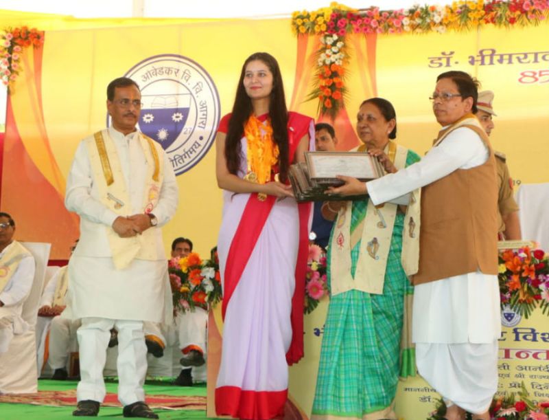 आगरा। डॉ. भीमराव अम्बेडकर विश्वविद्यालय के 85वें दीक्षांत समारोह में राज्यपाल आनंदीबेन पटेल ने बेटियों को खास संदेश दिया। राज्यपाल ने आगरा विश्वविद्यालय के गौरवमयी इतिहास का जिक्र किया। राज्यपाल ने कहा कि इस विवि ने देश को दो प्रधानमंत्री दिए हैं। दीक्षांत समारोह की अध्यक्षता कुलाधिपति राज्यपाल आनंदीबेन पटेल ने की। मुख्य अतिथि उपमुख्यमंत्री डॉ. दिनेश शर्मा थे। 85वे दीक्षांत समारोह में कुलाधिपति ने मेधावियों को 108 मेडल दिए। पदक पाने वाले मेधावियों में 98 छात्राएं और 23 छात्र हैं। पदकों में 105 स्वर्ण और 16 रजत हैं। 85 स्वर्ण और 13 रजत पदक छात्राओं को मिले। चार डीलिट, 71 पीएचडी और 127 एमफिल की डिग्री भी दी गईं।