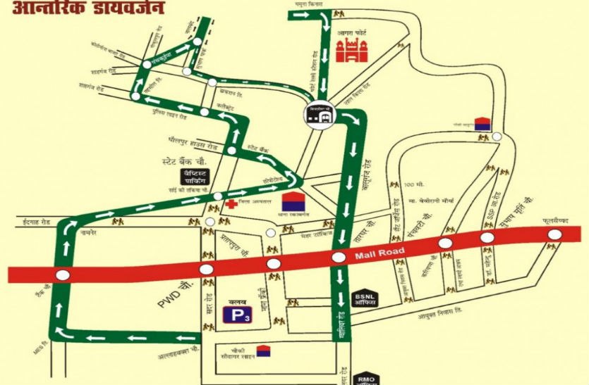 तहसील तिराहे से भोगीपुरा के बीच प्रचलित वन वे ट्रैफिक व्यवस्था नहीं रहेगी। दोनों तरफ से वाहनों का आवागमन जारी रहेगा।