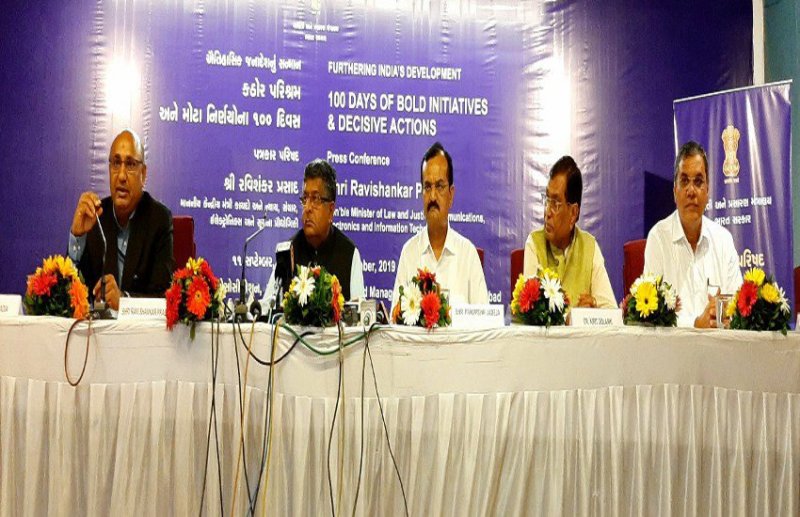 केन्द्रीय सूचना प्रौद्योगिकी मंत्री प्रसाद ने बुधवार को अहमदाबाद मैनेजमेंट एसोसिएशन सभागार में मोदी सरकार २.० की 100 दिनों की उपलब्धियों के बारे में संवाददाताओं को जानकारी देते समय यह घोषणा की।