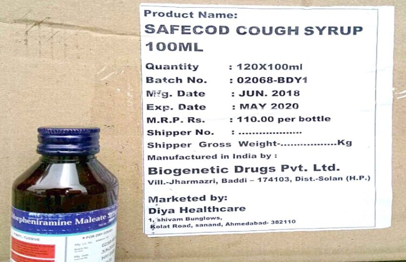विभाग के अनुसार अहमदाबाद के बेहरामपुरा एवं पाटण में छापा मारा गया था। उस दौरान मेसर्स बायोजिनेटिक ड्रग्स प्राइवेट लिमिटेड सोलन (हिमाचल प्रदेश की कंपनी) की ओर से उत्पादित सैफेकोल्ड कफ सिरप की सौ मिलीलीटर की ४२ हजार से अधिक बोटल मिली थीं। जिसकी अनुमानित कीमत ४६ लाख के आसपास बताई जा रही है। इस मामले में तीन जनों को गिरफ्तार भी किया गया है। राज्यभर में दवाइयों की दुकानों पर जांच अभियान टीम चलाए जाने की संभावना जताई गई है। आमतौर पर कुछ दवाइयां ऐसी हैं जिनकी बिक्री करने का लाइसेंस सभी दुकानदारों को नहीं होता।