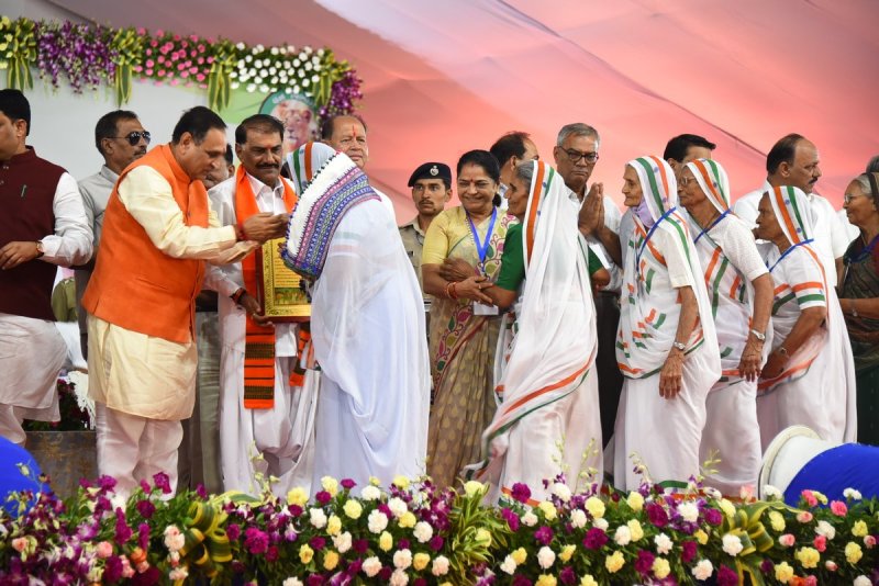 गांधीनगर. गहरी आंखों में एक अलग चमक। उम्र के 70 से 80 के पड़ाव की महिलाएं। इस उम्र में तिरंगे कपड़े वाली साडिय़ों में उनकी देश के प्रति भावना देखते ही बनीं।
