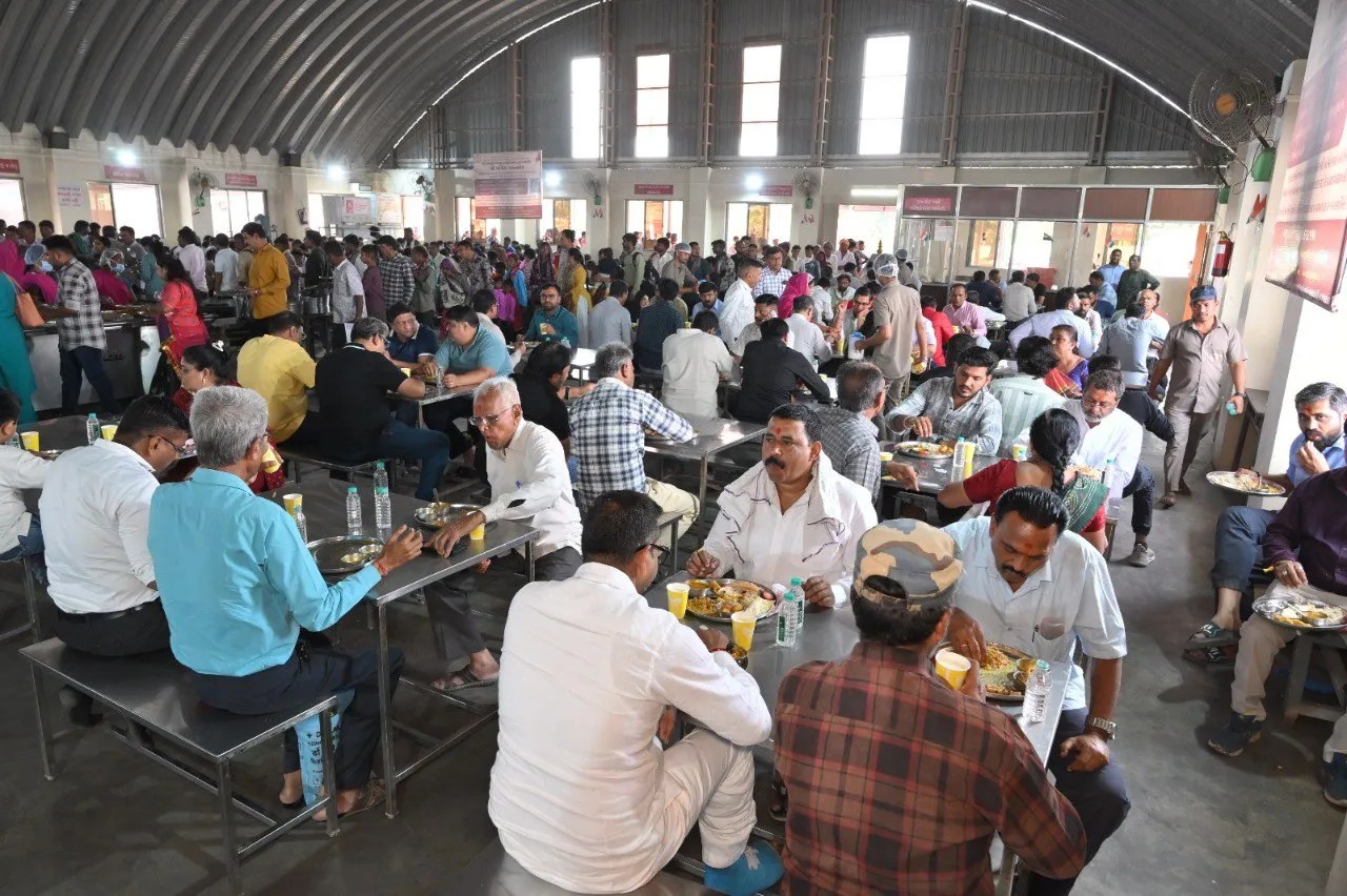 अंबिका अन्नक्षेत्र में भोजन प्रसाद लेते श्रद्धालु।