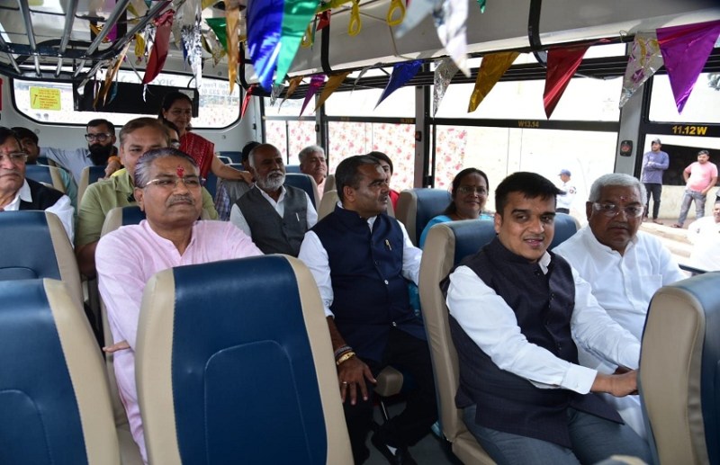 परिवहन राज्यमंत्री ने नई बस में की यात्रा