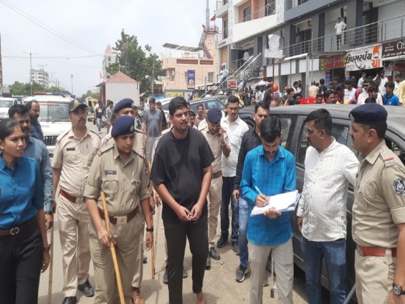 इस हादसे में स्थानीय अपराध शाखा (एलसीबी) के सहायक उपनिरीक्षक (एएसआई) अनिरुद्धसिंह वजुभा गोहिल के पुत्र हर्षराजसिंह गोहिल (20) ने तेज गति से कार चलाकर चार-पांच लोगों को टक्कर मार दी। पुलिसकर्मी के पुत्र हर्षराजसिंह गोहिल को पुलिस ने शनिवार को गिरफ्तार किया। नीलमबाग पुलिस ने शनिवार को पूरी घटना का रीकंस्ट्रक्शन करवाया। इस दौरान आरोपी ने पूरी घटना बताई। इस दौरान लोगों की भीड़ एकत्र हो गई।