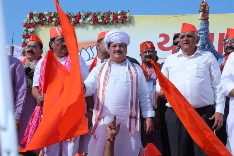 BJP Chief J P Nadda flaggs off Gujarat Gaurav Yatra, targets Congress